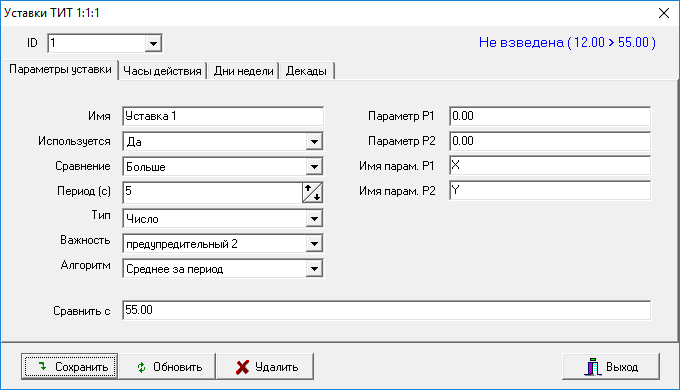 ID - номер уставки. Для одного ТИТ можно применить большое количество уставок, каждая из которых должна иметь уникальный номер.
