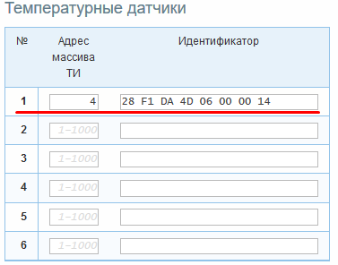 Внимание: если к контроллеру подключен только один датчик температуры, то заполнять параметр «Идентификатор» не обязательно.