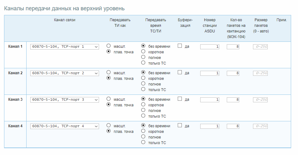 Для каждого из канала связи необходимо настроить адресацию телеуправление осуществляющее функцию захвата. Адреса в каналах могут быть разные.