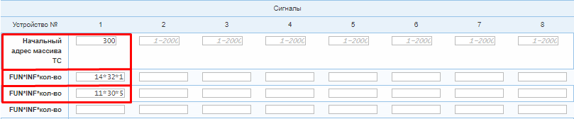 При значениях FUN=11 и INF=30 и необходимости опросить пять телесигналов, то строка настройки будет выглядеть - 11*30*5