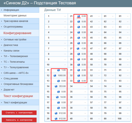 Так как контроллер «Синком-Д2» не принимает данные из шины «Исеть TM-BUS» ТИ получаемые контроллером «Синком-Д3» в его массиве ТИ не отражаются.