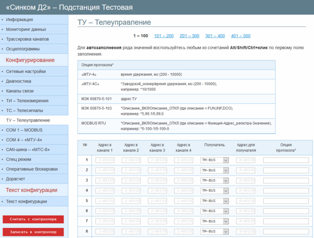 Настроить адреса ТУ в каналах связи с «верхним уровнем».