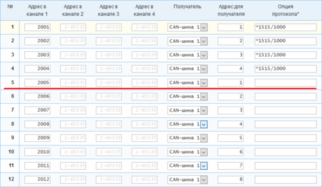 Внимание: адреса в канале не должны пересекаться с адресами ТС и ТИ.