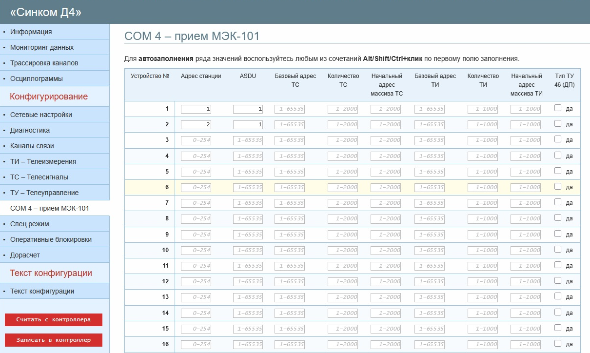 Внимание: адреса в канале не должны пересекаться с адресами ТС и ТИ.