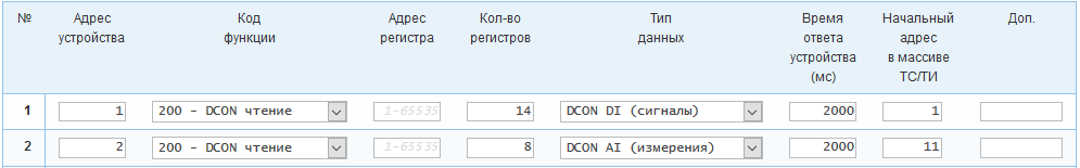 4.8.7. Настройка запросов с кодами функций 200 (DCON чтение)