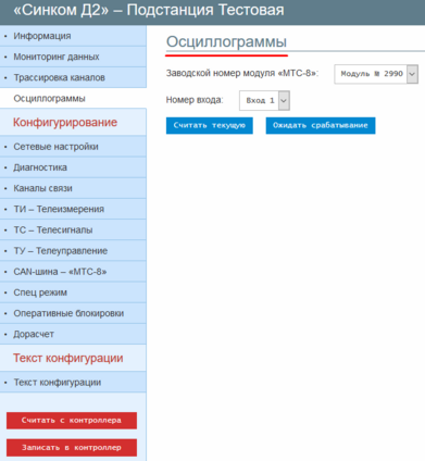 Чтобы посмотреть осциллограмму одного из входом модуля серии «МТС-8» необходимо выполнить следующие действия: