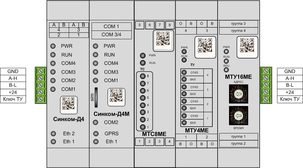 Контроллеры «Синком-Д4» и «Синком-Д4М» устанавливаются на DIN - рейку и имеют соединение с модулями по шине TBUS.