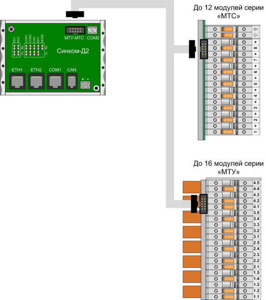 Подключение модулей с помощью шины «МТС-МТУ»: