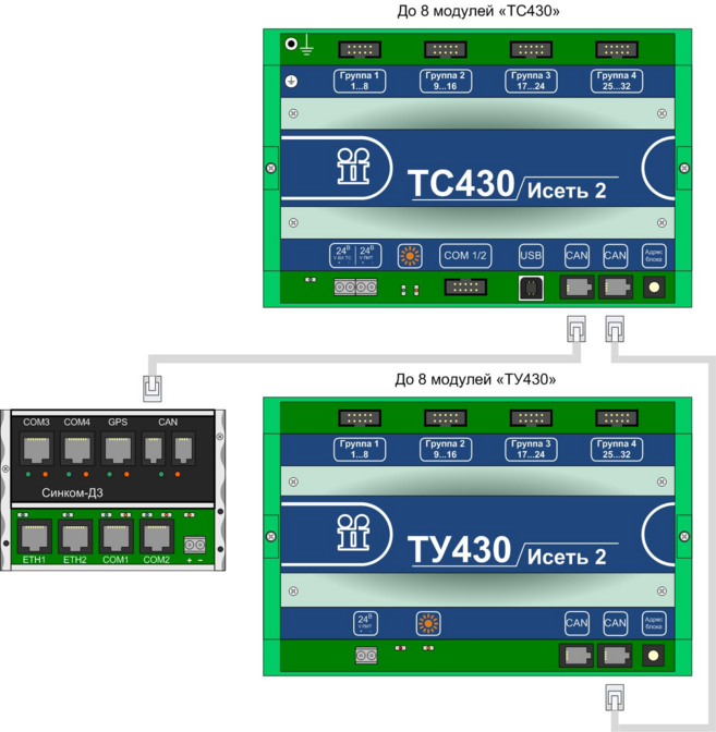 3.5.3. Подключение модулей к контроллеру «Синком-Д3»