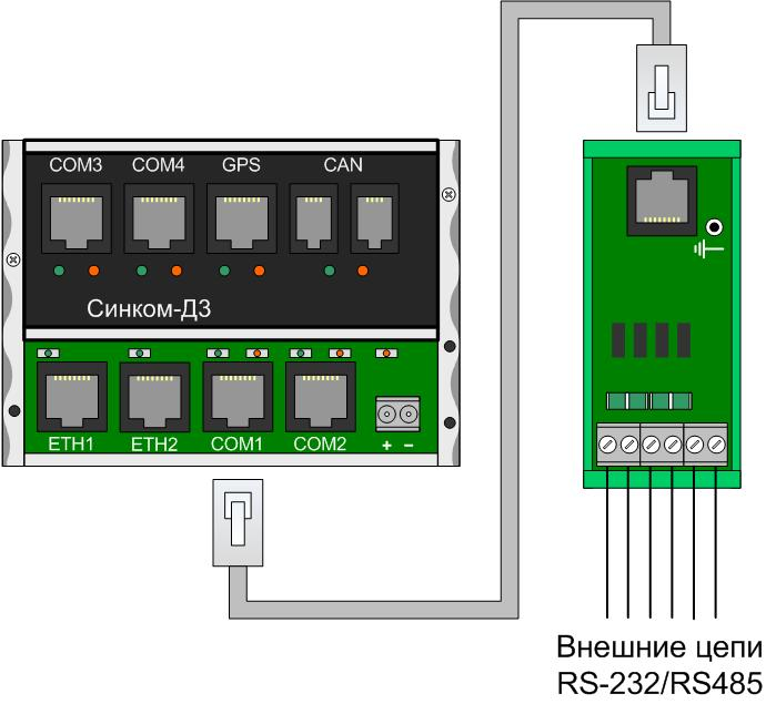 3.3.2. Подключение RS-232/RS-485 к контроллеру «Синком-Д3»