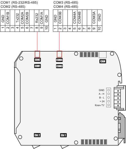 3.3.6. Подключение RS-232/RS-485 к контроллеру «Синком-Д4»