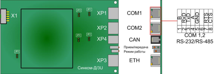 3.3.4. Подключение RS-232/RS-485 к контроллеру «Синком-Д/3U»