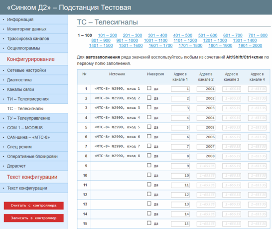 Внимание: адреса в канале не должны пересекаться с адресами ТУ и ТИ.
