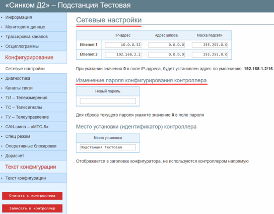 Для сохранения внесённых изменений необходимо нажать кнопку «Записать в контроллер».