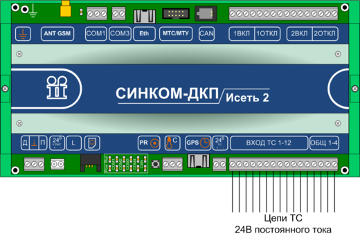 Внешние цепи ТС подключаются непосредственно к контроллерам «Синком-ДКП» и «Синком-ДКП»/13,8. Для подключения цепей ТС используются винтовые клеммы для проводов сечением до 2,5 мм